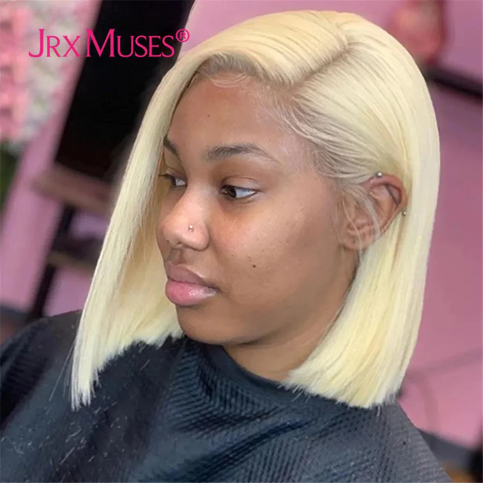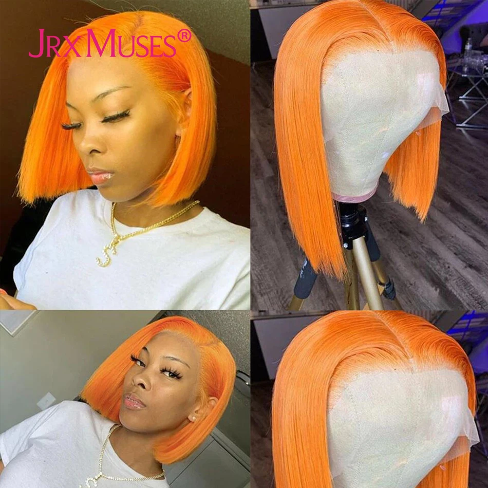 Короткий Боб парики из натуральных волос на кружевной Цветной отбеленные предварительно вырезанные парики из волос 13x6x1 кружевной передний парик Оранжевый Цветной для чернокожих женщин