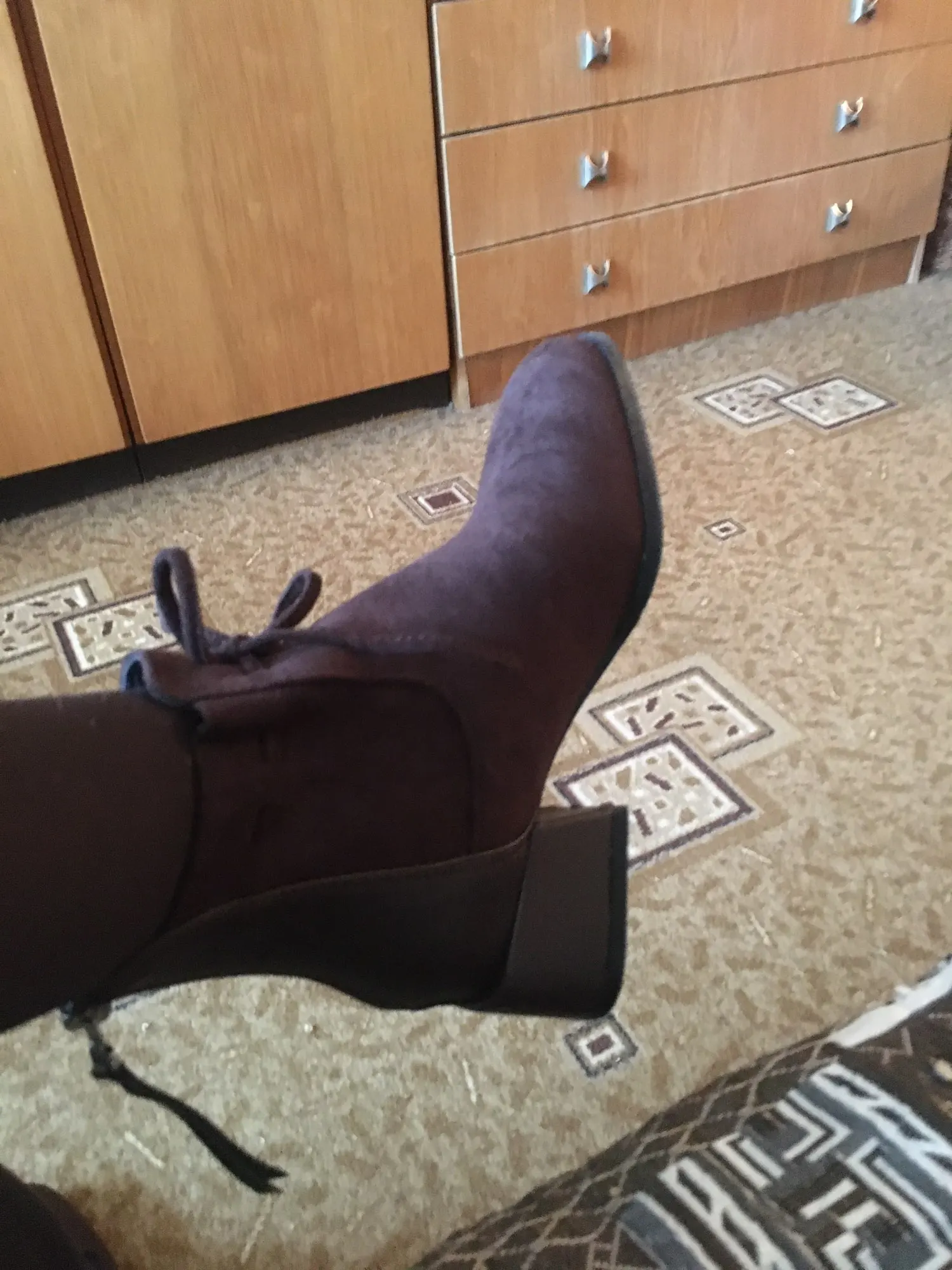 А сейчас об этих ботиночках. Они безупречны. Смотрятся на ножке великолепно. В точности соответствуют рекламным фото. Выглядят дороже своей стоимости. Удобные, размерная сетка соответствует заявленной. Вся заказанная обувь у этого продавца подошла как нельзя лучше. Я выбрала с плюшем. Они утеплены, весной и осенью в них будет очень комфортно. Потрясающая пара обуви!