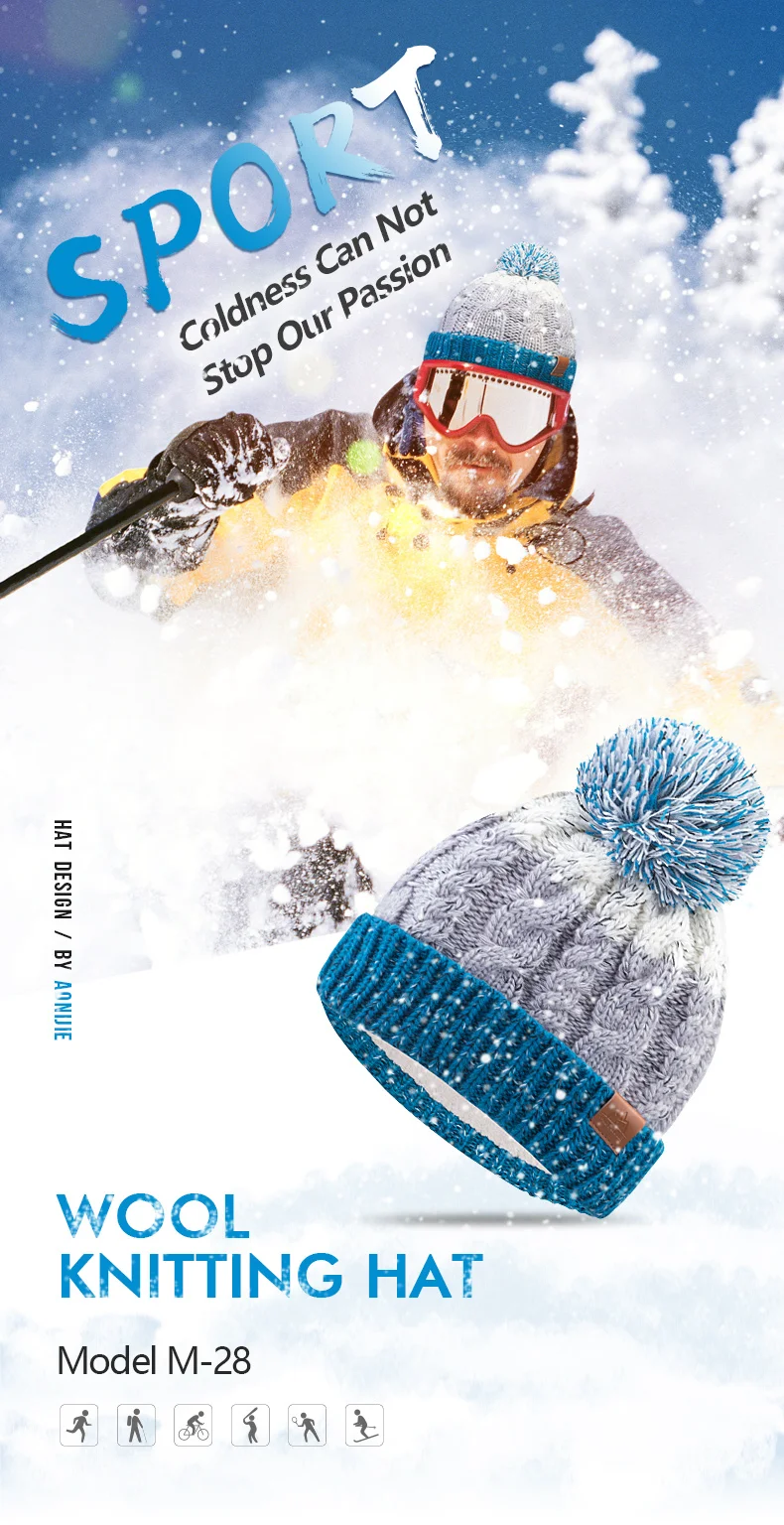 AONJIE M29 Толстая зимняя вязаная шапка с флисовой подкладкой для взрослых детей шапка с манжетой и черепом круглый шарф для катания на лыжах