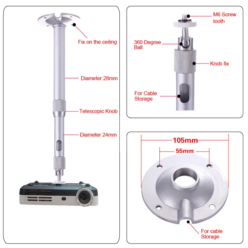 Регулируемый 360 градусов потолочный проектор кронштейн загрузки 5 кг для UNIC Excelvan JmGO XGIMI проектор