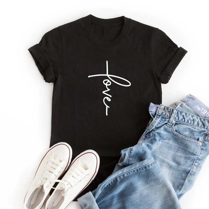 Женская футболка с надписью Love Cross, летняя футболка унисекс с круглым вырезом и графикой, подарок на день Святого Валентина, Прямая поставка
