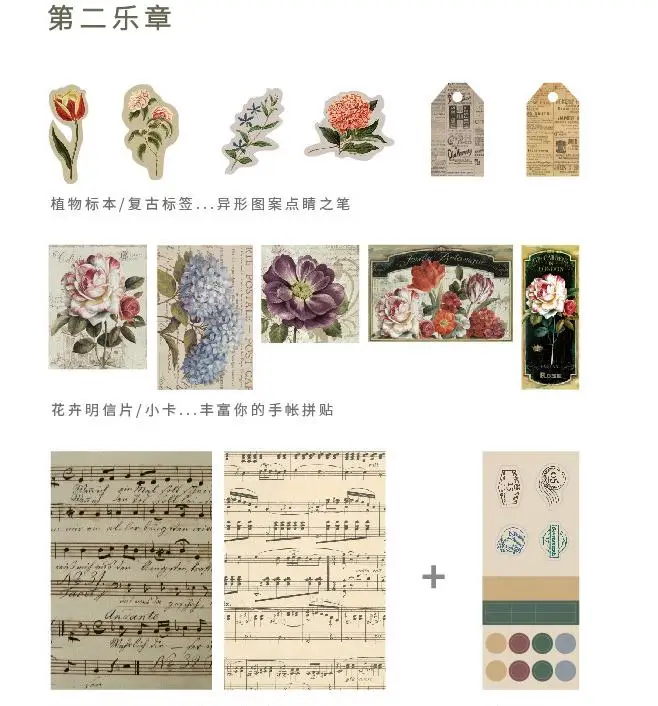 40 шт., ретро билет, растения, материал, бумага, дневник, планировщ...