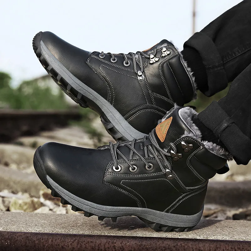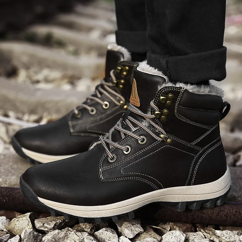 Зимняя обувь, мужские зимние ботинки, мужские уличные теплые меховые ботильоны, Рабочая обувь унисекс, кожаная обувь, мужские ботинки на плоской подошве, мужские ботинки