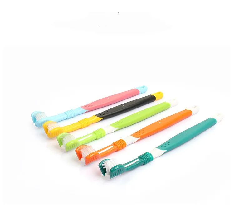 Зубная щетка для собак зубная щетка для животных с тремя головками, нескользящая ручка для чистки зубов, товары для ухода за зубами, чистка рта