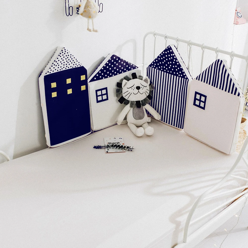 Бампер для детской кровати, 4 шт., с рисунком маленького дома, защи...