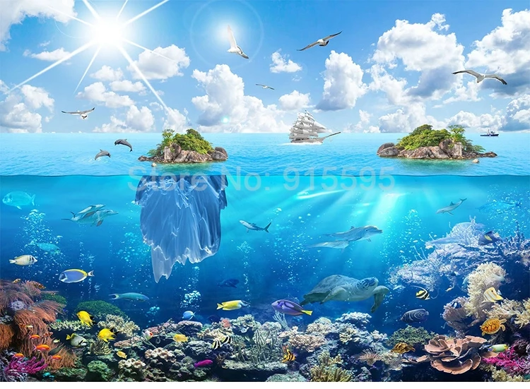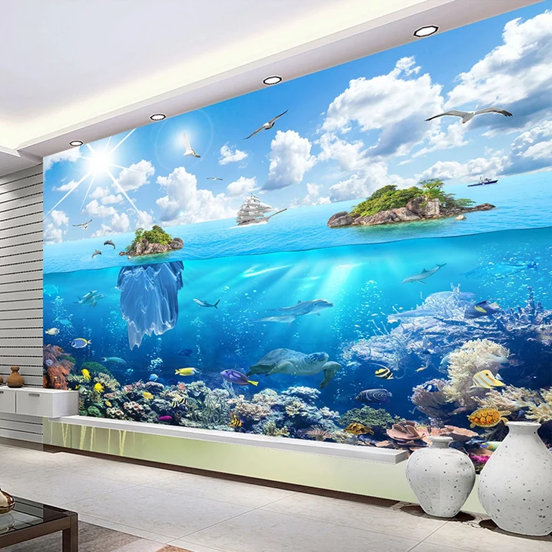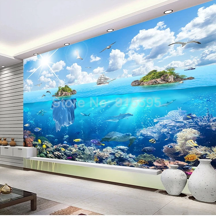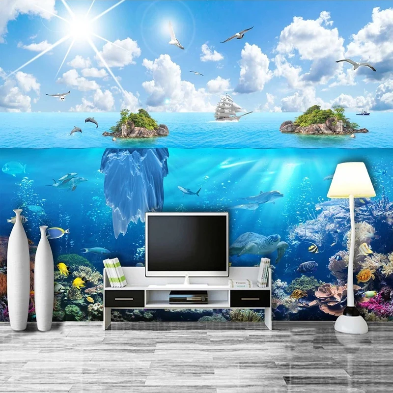Фотообои на заказ, морской остров, подводный мир, морской пейзаж, 3D фотообои, домашний декор, наклейка для гостиной, спальни