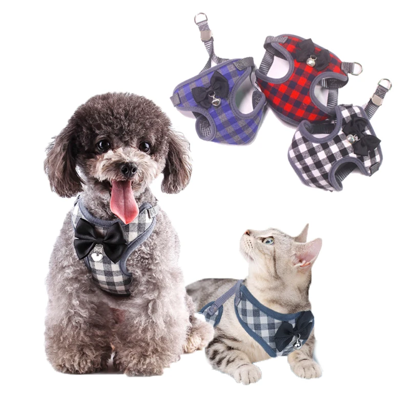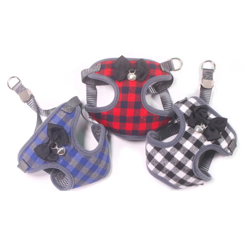 Шлейка-поводок в клетку для маленьких собак и кошек, женский жилет, сетчатый поводок с бантом для маленьких щенков, чихуахуа, йорков