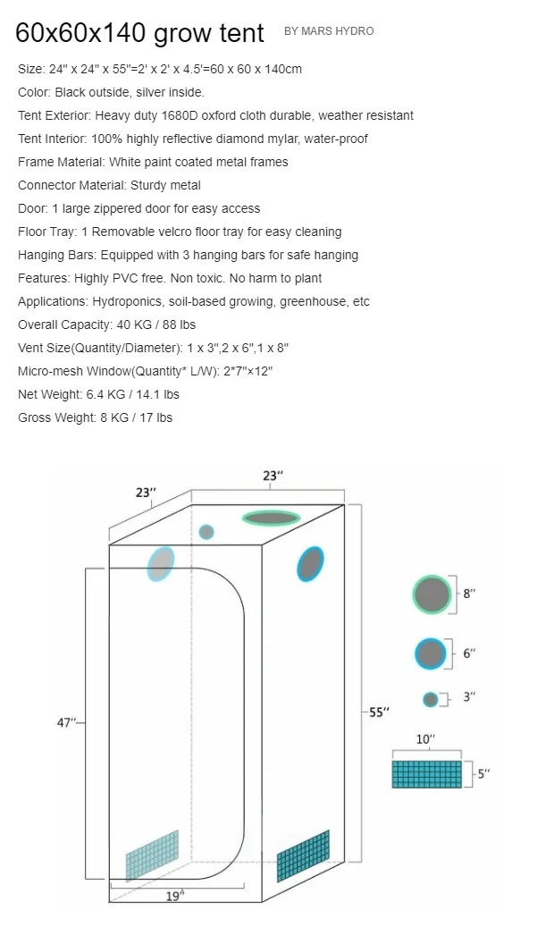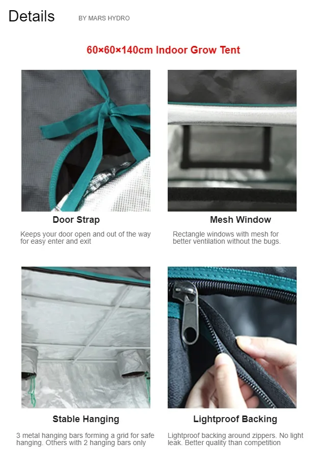 Палатка для выращивания растений MarsHydro 1680D, 60x60x140 см, алмазная Светоотражающая майларовая, для помещений гидропоника, шатер для выращивания (24x24x55 дюймов)