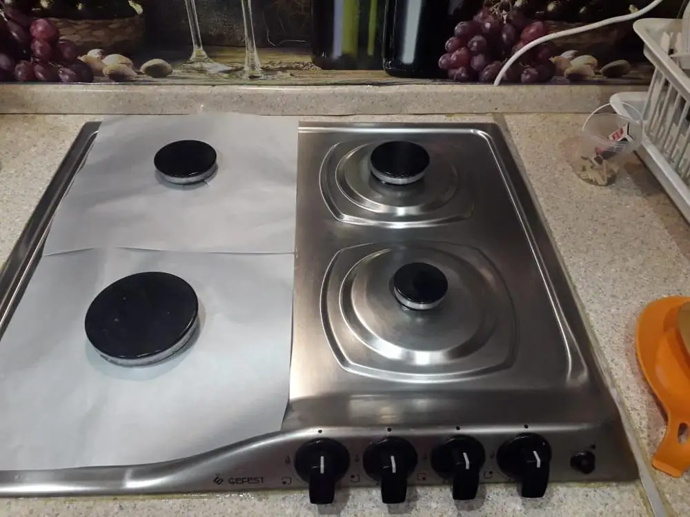 Вещь наверно удобная , но мне не подошла по размеру. Заранее вырежьте дома из бумаги шаблоны, что бы проще примерить к вашей плите ! У меня если расположить их по центрам горелок по краям они выходят за пределы плиты (* жарочной поверхности), а в середине - зазор . Буду искать подобный материал без выездов.
