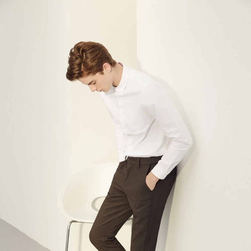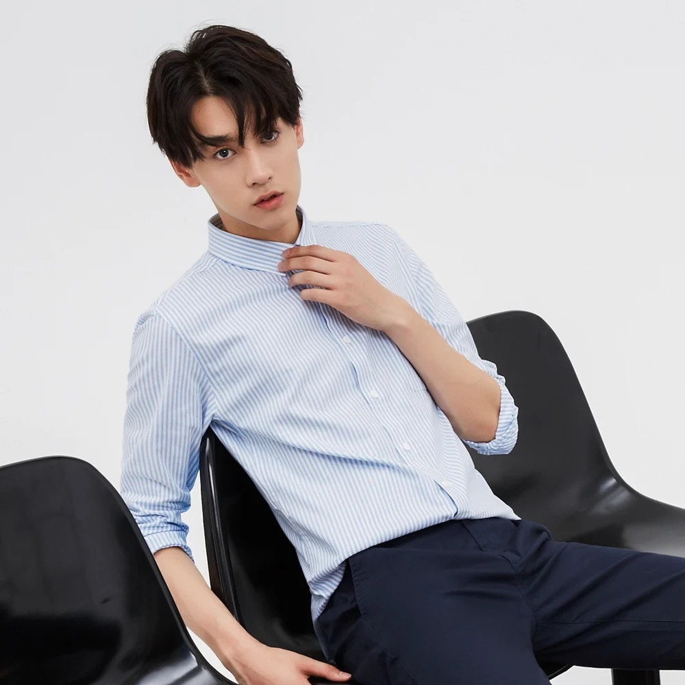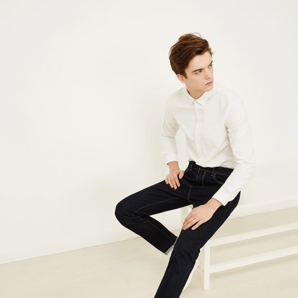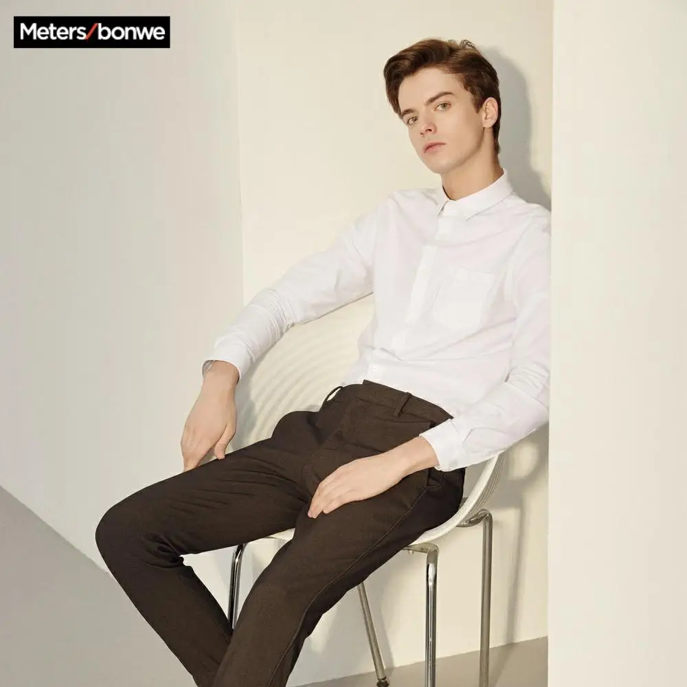 Metersbonwe Брендовые мужские Смарт повседневные рубашки весна осень мужские тонкие рубашки с длинным рукавом обычные хлопковые мужские базовые Топы
