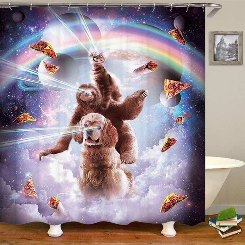 Забавная занавеска для душа с динозавром и пиццей, водонепроницаемая ткань из полиэстера