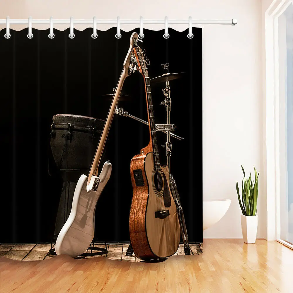 Музыкальные инструменты, акустическая гитара, барабан, душевая занавеска, набор, Водонепроницаемая Ванная Комната