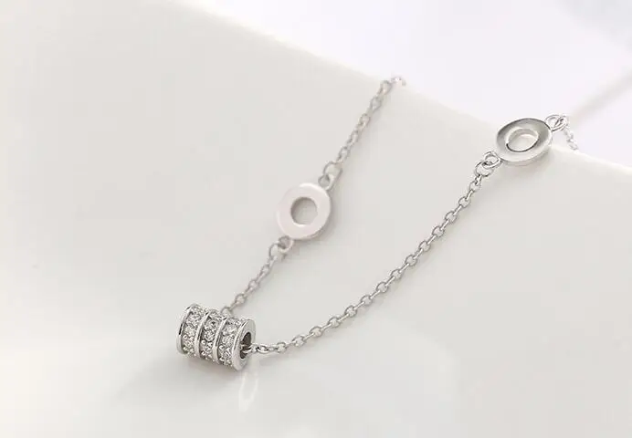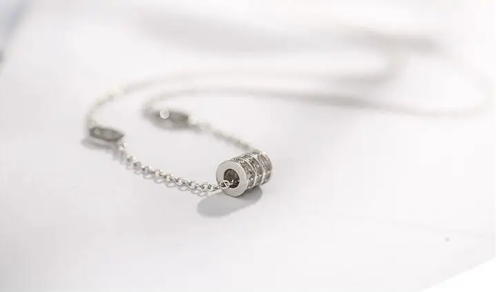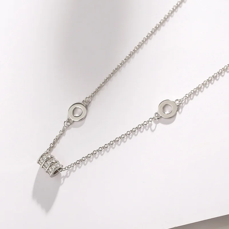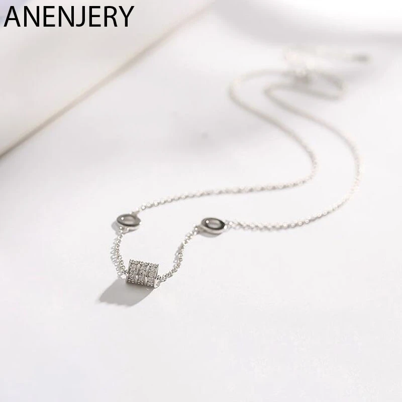 ANENJERY 925 пробы серебро Micro Pave ожерелье с цилиндром для Для женщин CZ Циркон Круг Колье Ожерелье S-N461