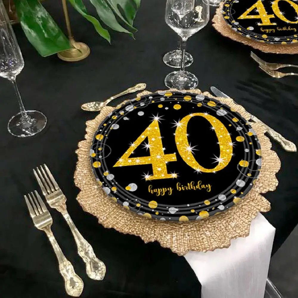 40 лет, украшение для дня рождения, черные золотые шары, 40 лет, од...