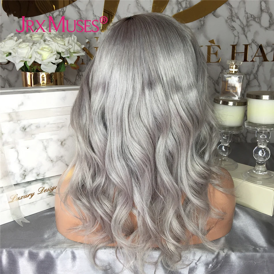 Парики из натуральных волос на кружевном фронте, бразильские волнистые волосы Remy, отбеленные узлы, 150% плотность, цвет Омбре, серый, прозрачный, для женщин