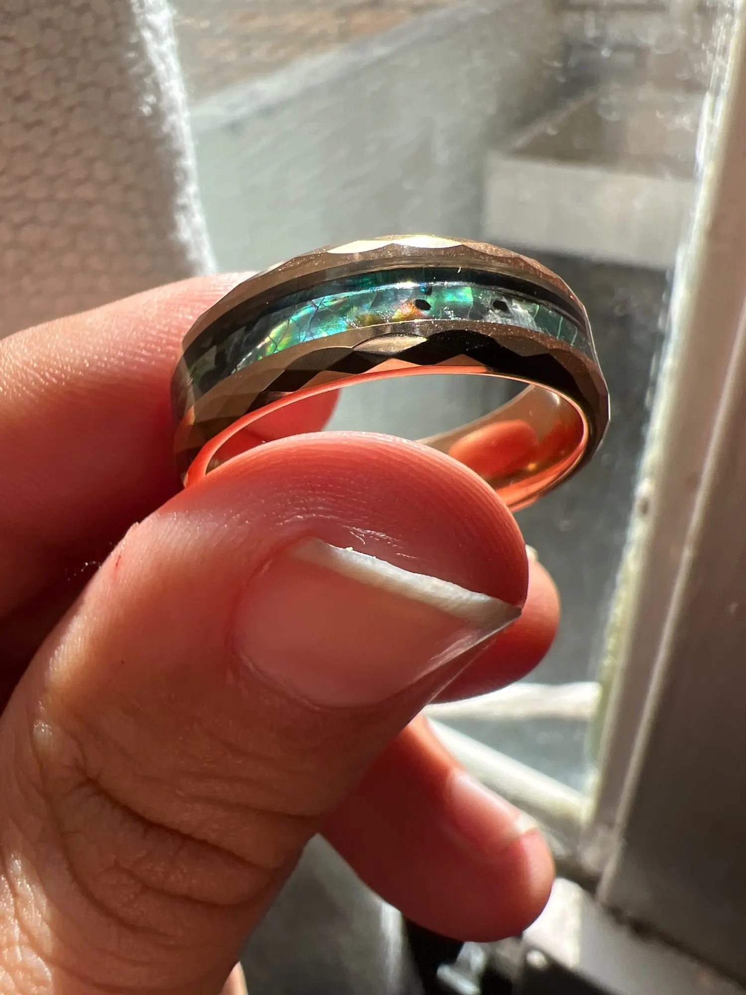 Наше кольцо из карбида вольфрамаЭто красивое обручальное кольцо из вольфрама шириной 8 мм с отполированными гранеными краями и инкрустацией в виде раковины абалона. Защитное покрытие добавляется на вольфрамовое кольцо для защиты от воды и грязи. Каждая инкрустация раковины абалона уникальна благодаря образу матери-природы, что делает ее эксклюзивной для вас. Удобное кольцо, которое прослужит вам всю жизнь. -Цвет: черный, розовое золото, серебро-Ширина: 8 мм-Материал: Карбид вольфрама и оболочка абалона-Отделка: полированная внутренняя и внешняя отделка-Стиль: элегантный современный дизайн