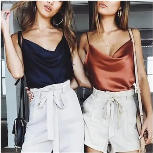 Женский Шелковый Атласный топ на лето, майки, майки, рубашки на бре...
