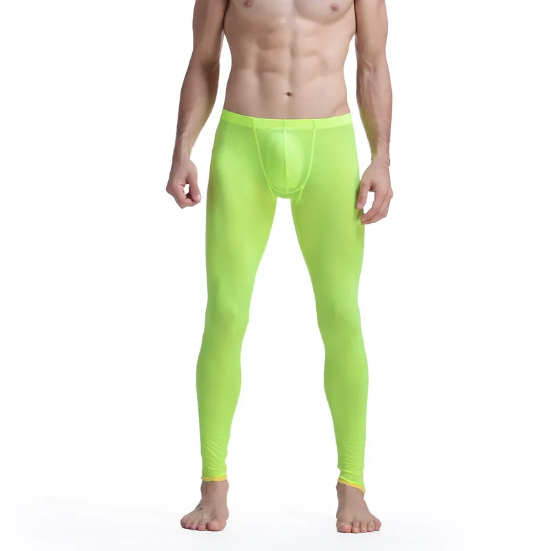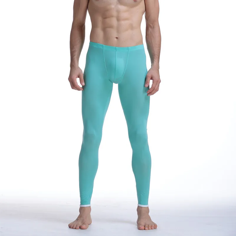 Мужские кальсоны, ультратонкие, из ледяного шелка, прозрачные обтягивающие брюки, нижнее белье, пижамные штаны, гей-леггинсы, майка