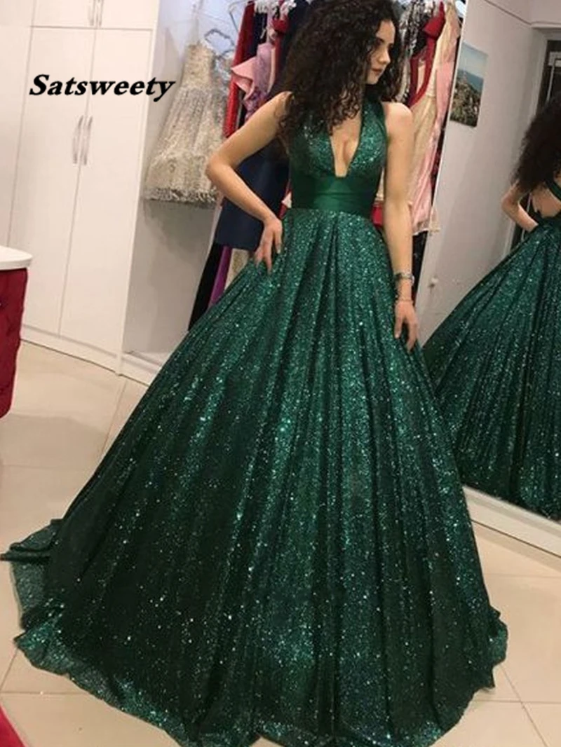 Изумрудно-зеленое бальное платье с V-образным вырезом и блестками, бальное платье с открытой спиной, длинное вечернее платье макси для выпускного вечера, вечернее платье, 2022