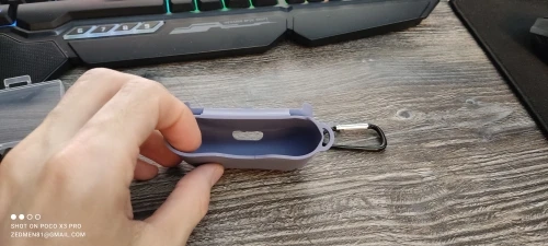 Думал с крышки будет постоянно сползать, в силу небольшой толщины крышки, но нет, все здорово. Карабин внутри чехла, доволен как слон. С чёрным чехлом классно смотрится красный светодиод.