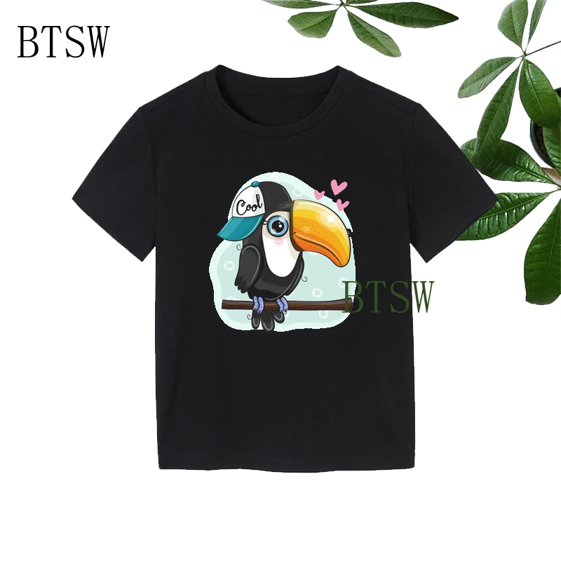 2022 мультяшный Тукан сидит на ветке забавные детские футболки детские летние топы для девочек и мальчиков футболка с коротким рукавом детская одежда