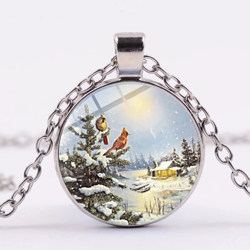 Новинка, ожерелье в виде птицы с кардиналами, винтажный фото, стеклянный кабошон, подвеска ручной работы, рождественский подарок, ювелирные изделия в виде животных Северной Америки
