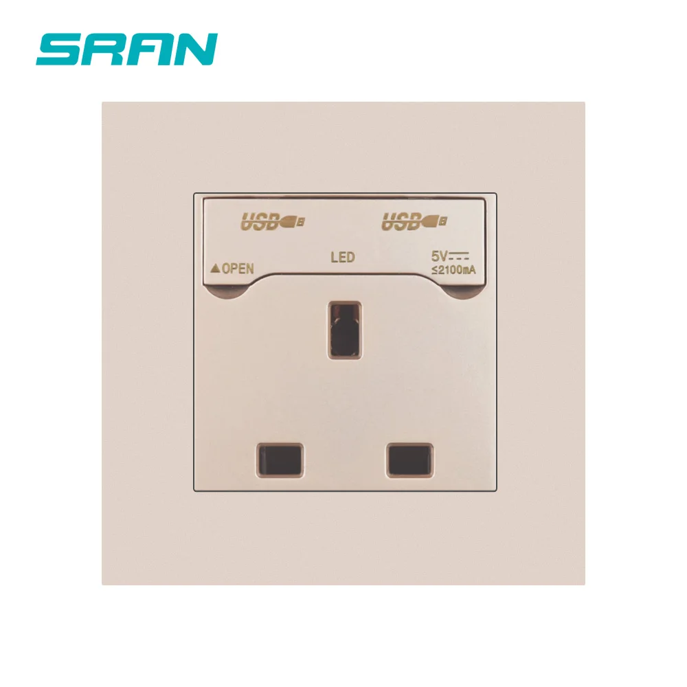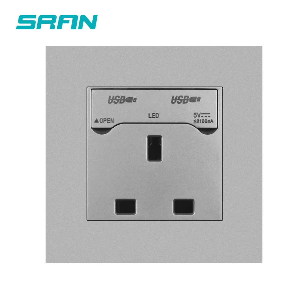 Настенная розетка SRAN стандарта Великобритании с USB-выходом, огнеупорная панель для ПК, электрическая розетка 86 типа С пылезащитной крышкой
