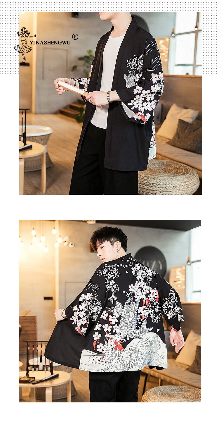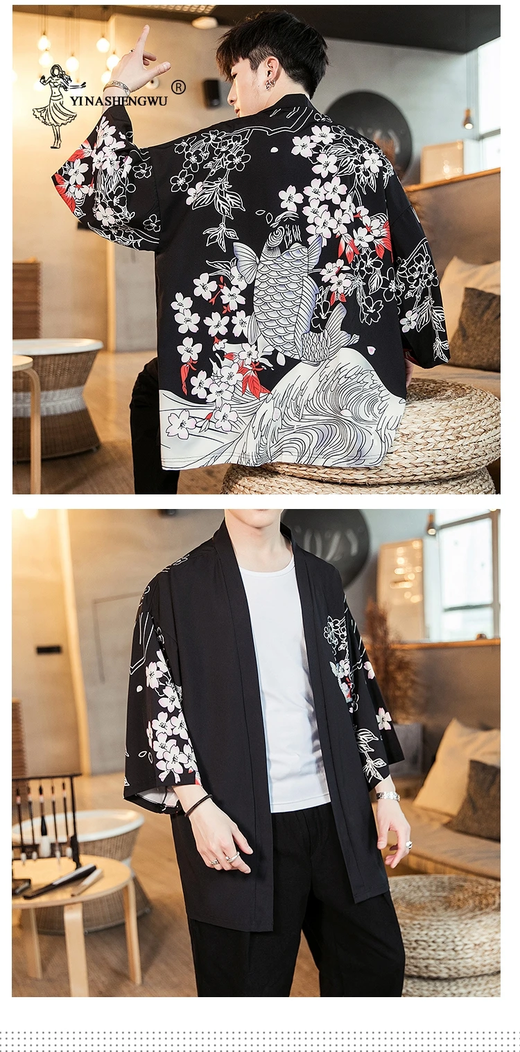 Повседневный Кардиган, рубашка, кардиган-кимоно для мужчин, традиционное японское кимоно, Пляжная тонкая азиатская одежда, японские кимоно, мужская куртка