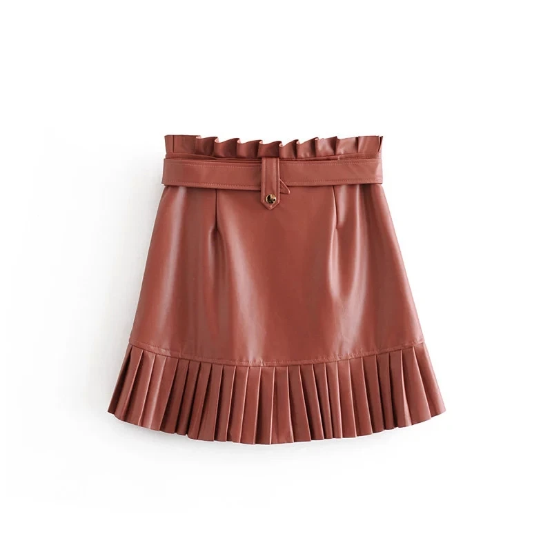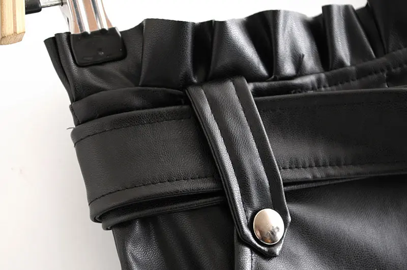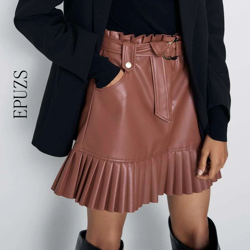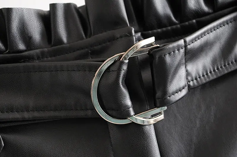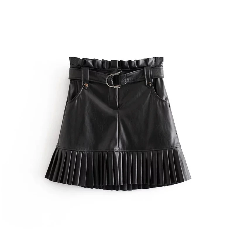 Мини юбка женская из искусственной кожи, элегантная пикантная уличная одежда с завышенной талией, шикарная плиссированная юбка с поясом, в Корейском стиле, Черная