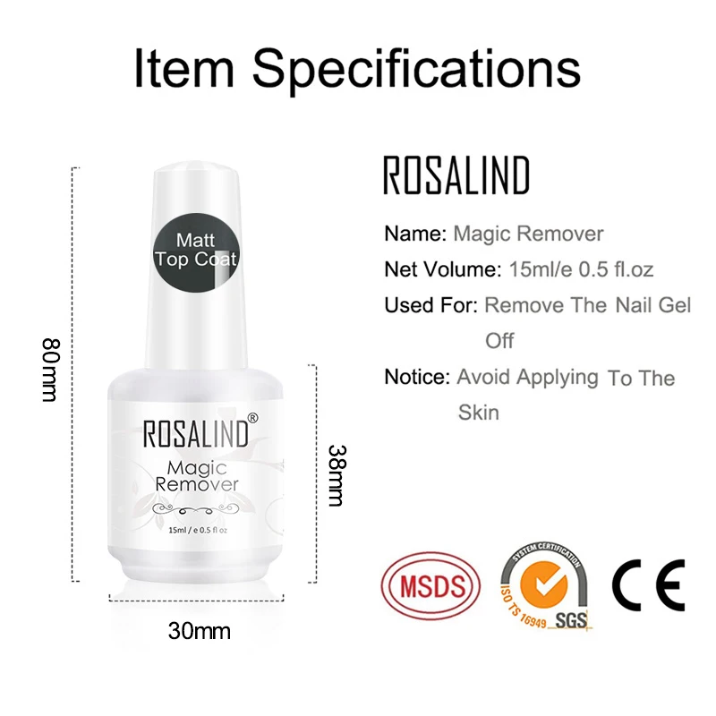 Гель-лак rosalind15 мл, база и топ, полуперманентный Матовый верхний слой, силовая резина для гель-лака, маникюр, Нейл-арт