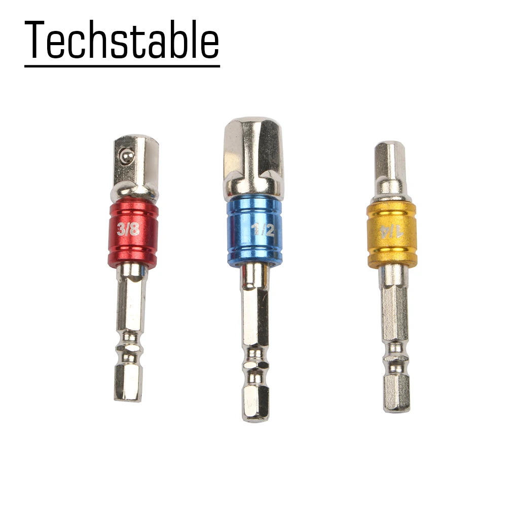 3 шт.компл. адаптер с шестигранным хвостовиком и переходником из хромированной ванадиевой стали для удлинительных сверл 14 "38" 12 ", набор шестигранных бит для электроинструментов