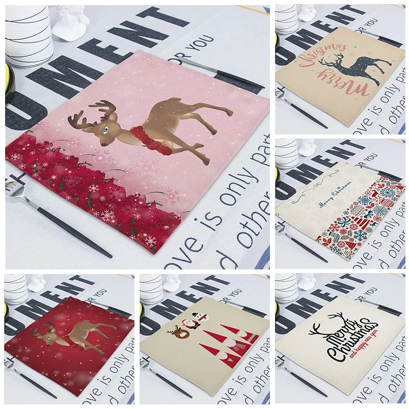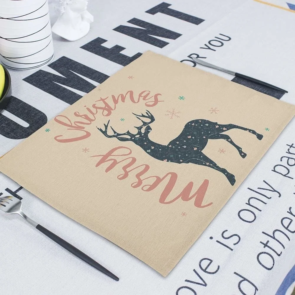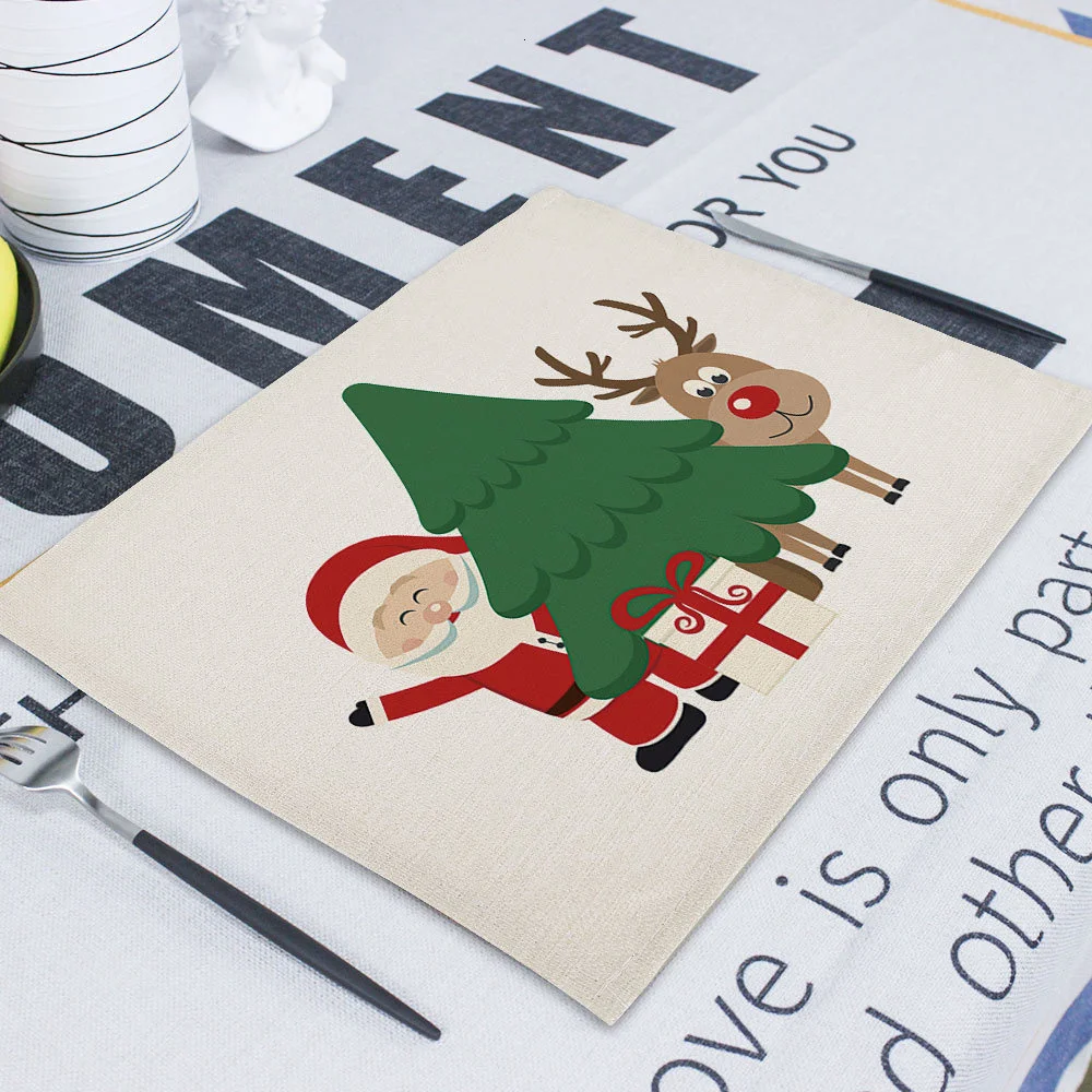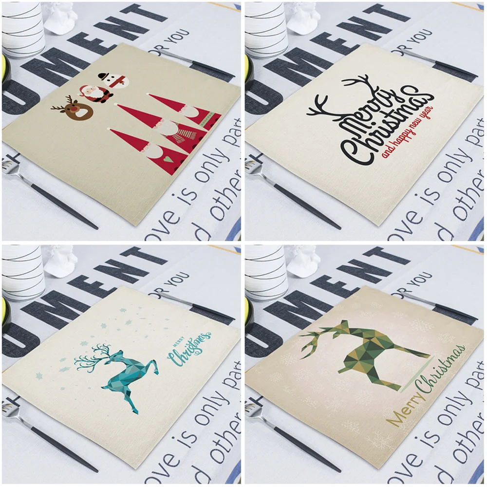 Счастливые рождественские настольные салфетки тарелки Санта-Клаус напечатанная ткань декор для ужина аксессуары для свадебной вечеринки салфетки Tovaglioli Natale