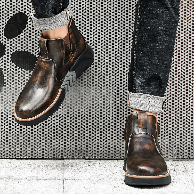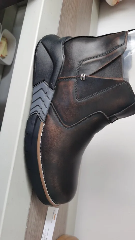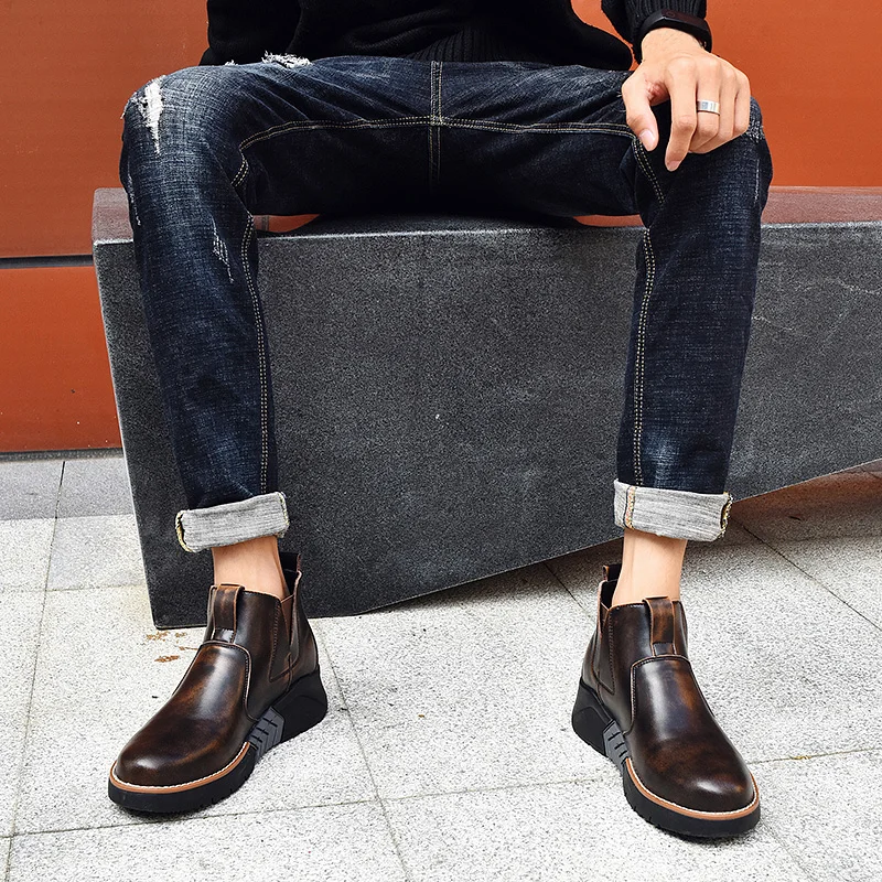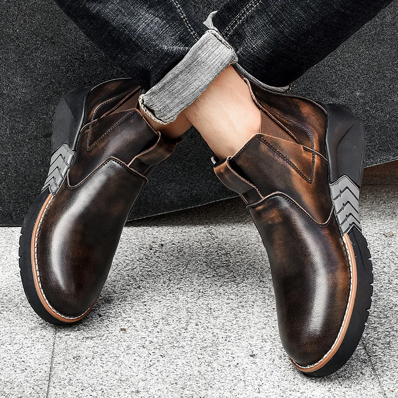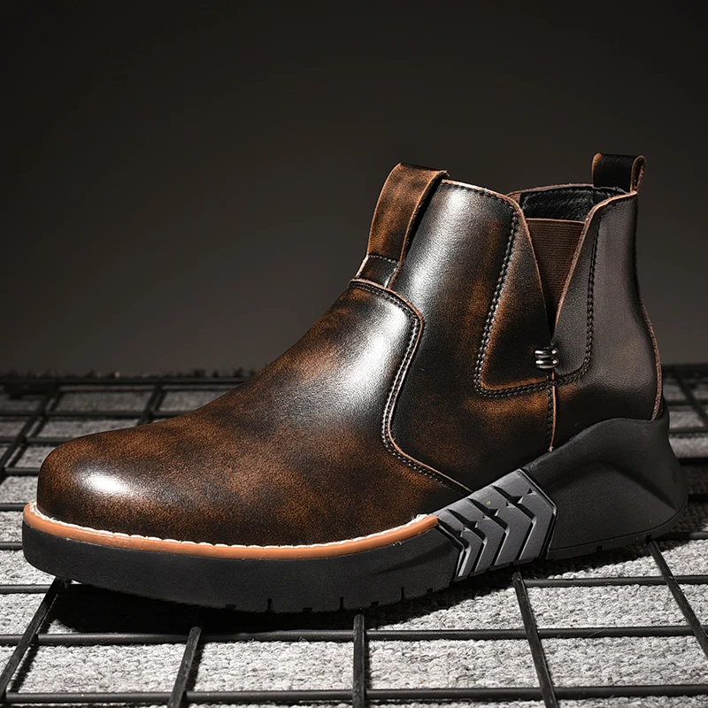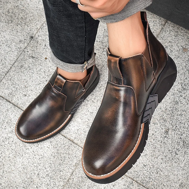Мужская кожаная обувь с высоким берцем, брендовая повседневная обув...
