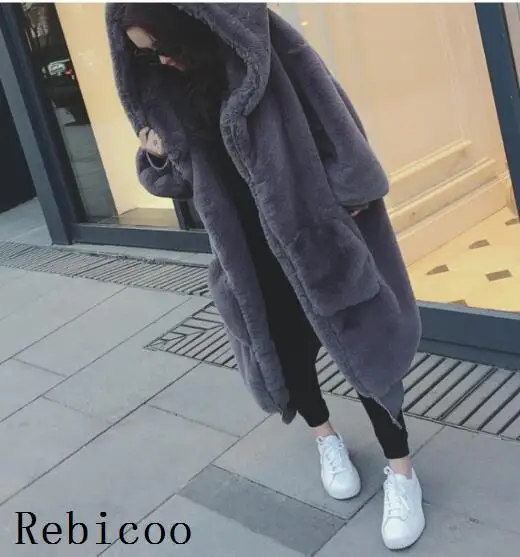 Зимнее меховое теплое Женское пальто с капюшоном большого размера средней длины однотонное мех и искусственный мех Новая повседневная женская шуба с длинным рукавом