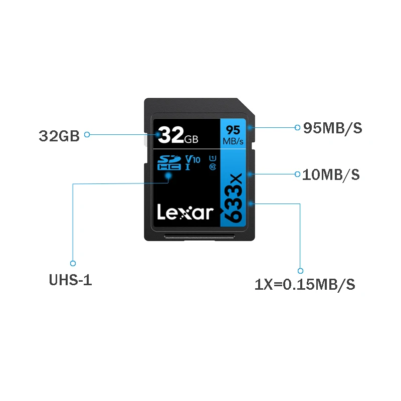 Предназначен для вашей DSLR, HD видеокамеры, 3D камеры, Lexar® Professional 633x SDHC™/SDXC™UHS-I карты позволяют быстро захвата и передачи высокого качества фотографии цветного защитного покрытия на Потрясающие 1080p full-HD, 3D и 4K video2 со скоростью чтения до 633x (95 МБ/с.) 1. Эти карты класса 10 используют UHS-I технологию для обеспечения высокой скорости работы.