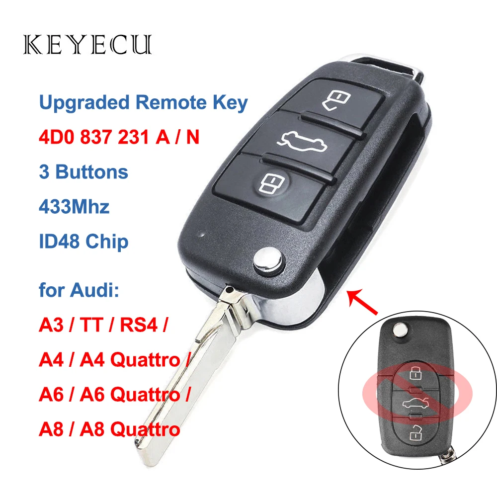 Обновленный флип-модуль Keyecu, 433 МГц, ID48, чип для Audi TT RS4 A3 A4 A6 A8 Quattro PN: 4D0837231A 4D0837231N