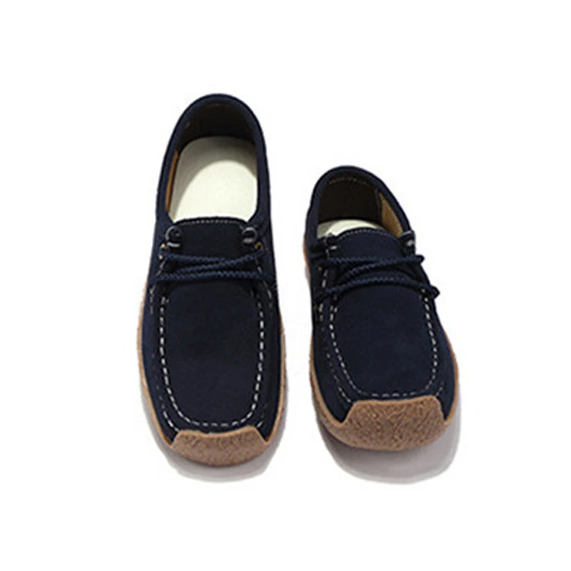 Туфли женские осенние, из замши, на шнуровке, туфли на плоской подошве из натуральной кожи