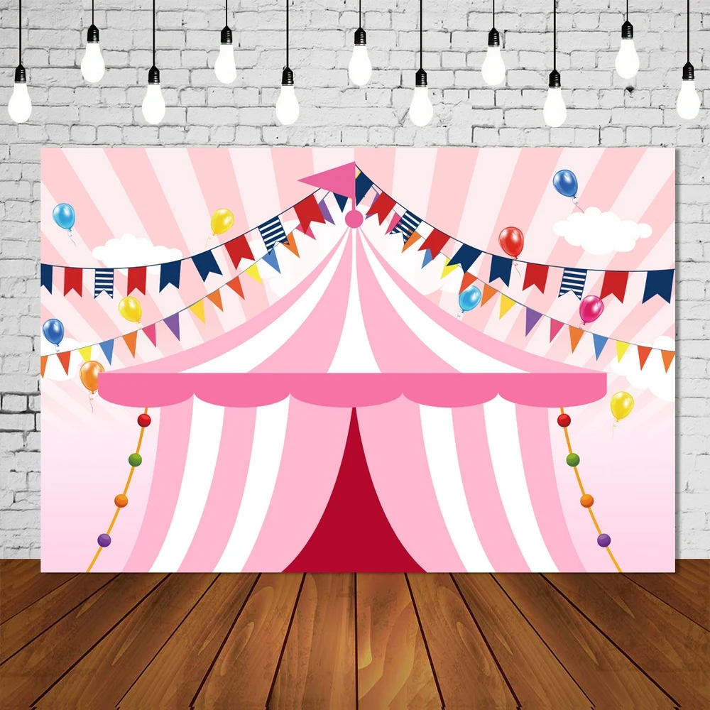 Фон с изображением цирка, большой Топ, тематический карнавал, клоун, девочка, день рождения, баннер, розовый шатер, веселая ярмарка, бантик, фон для фотосъемки