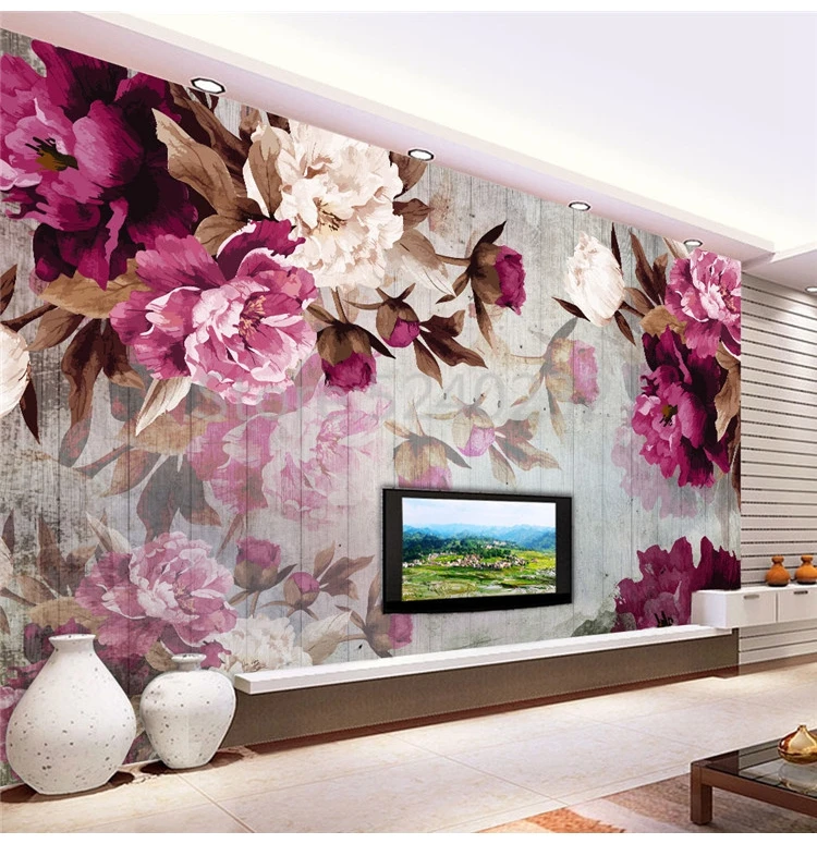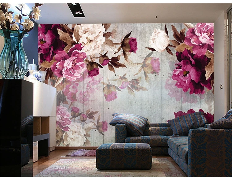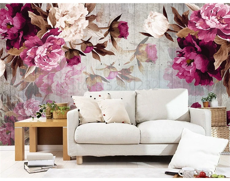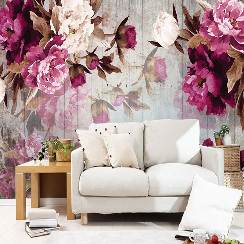 Настенные обои на заказ, винтажная текстура деревянных досок, фиолетовые цветы, настенная живопись для гостиной, спальни, фон, фотопостер