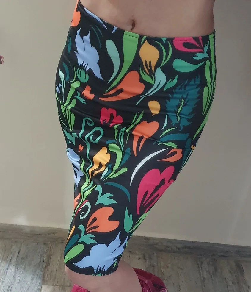 Яркие цвета, эластичная ткань, подходит для размера S на талии 75 см и бедрах 92 см. Он поставляется ниже колена на рост 1,70 см, на спине скрытая застежка и отверстие в нижней части для более удобной ходьбы. Хороший пошив и быстрая доставка.