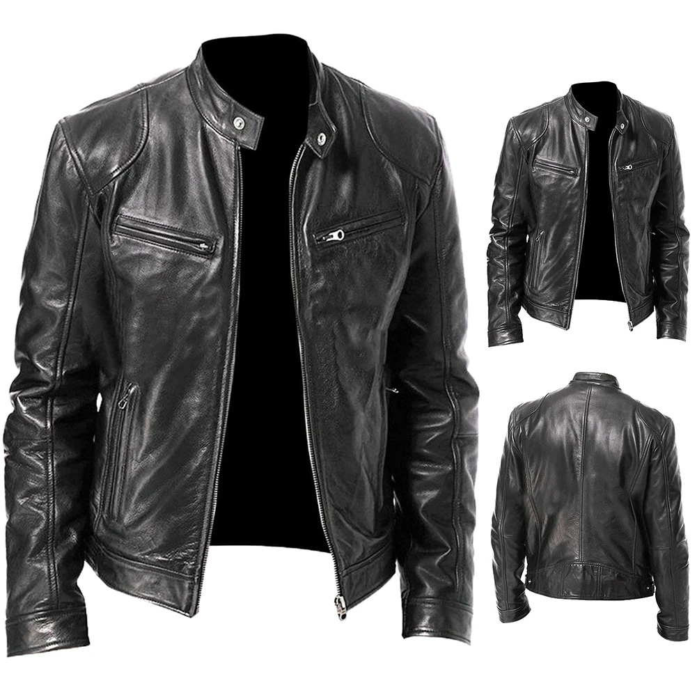 Мужская куртка осень зима воротник-стойка на молнии кожаная мотоциклетная куртка короткое пальто ветрозащитная теплая куртка мужская