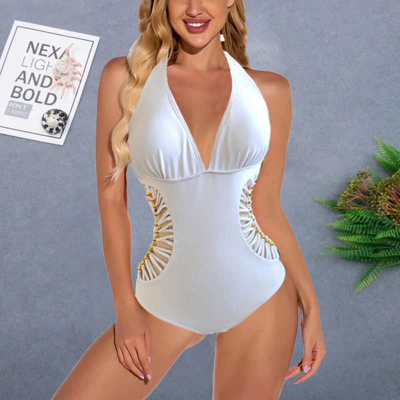 2022 сексуальный белый бандажный купальник-трикини с вырезами, купальный костюм, монокини с пуш-ап, Бразильская одежда для плавания, Женский цельный купальный костюм