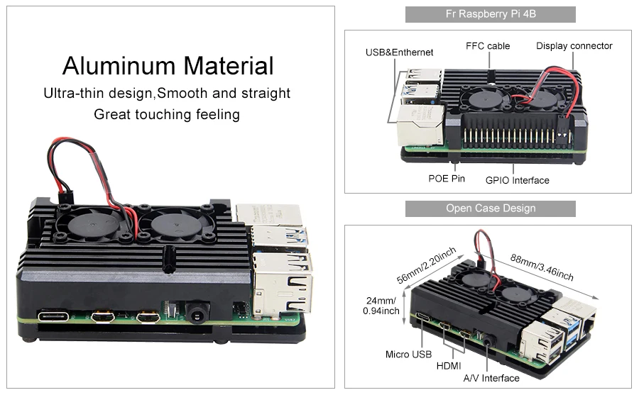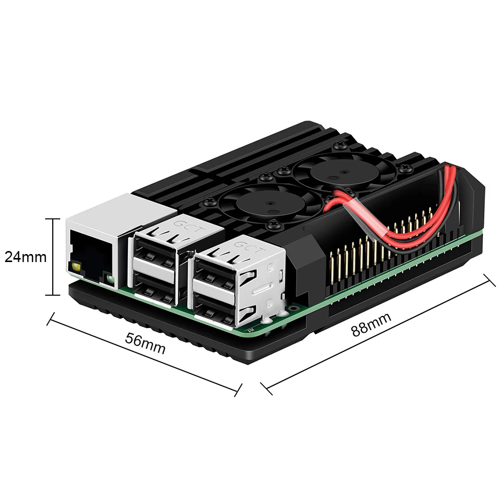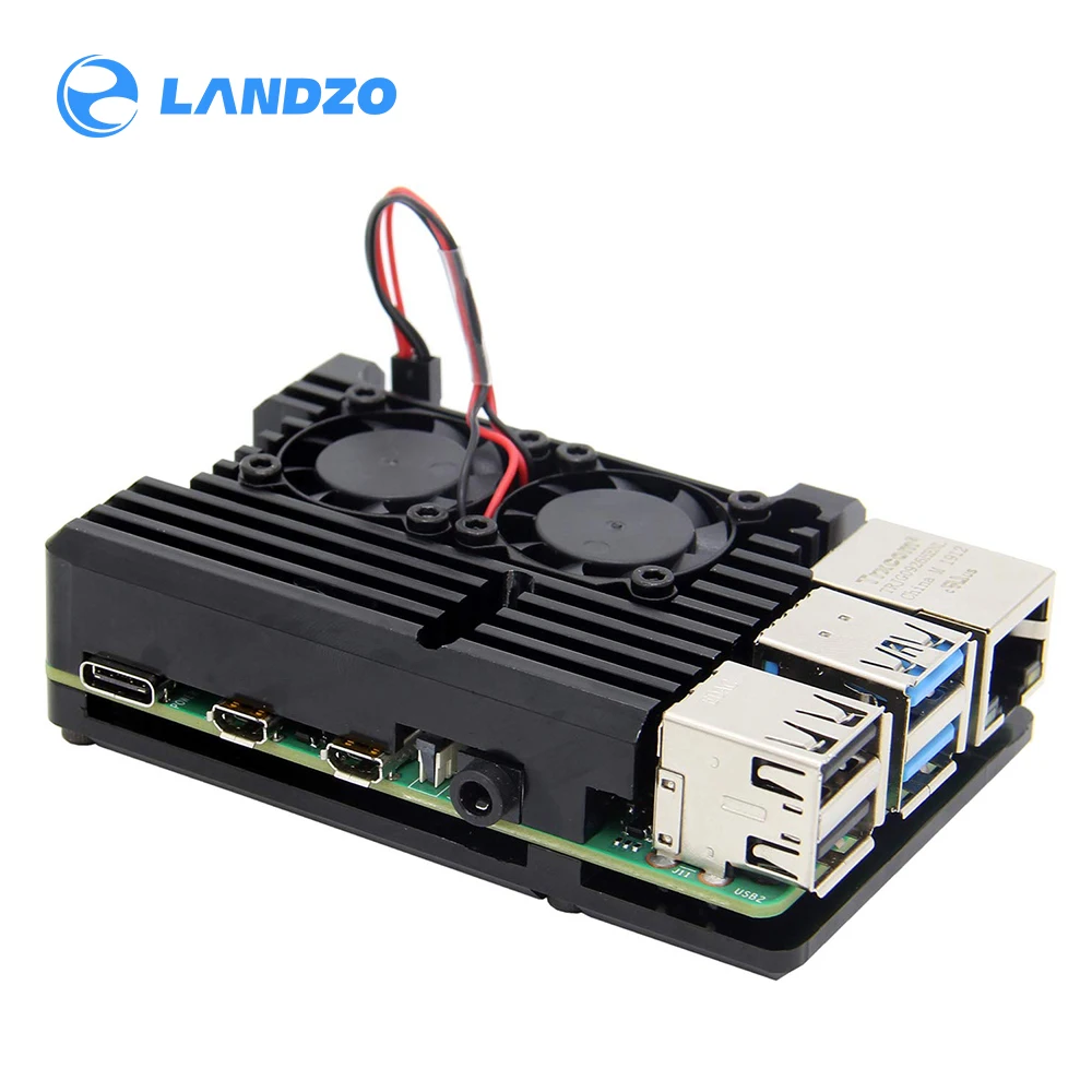 Чехол для Raspberry Pi 4 B с двумя вентиляторами, чехол из алюминиевого сплава с пассивным охлаждением, совместим только с Raspberry Pi 4 Model B