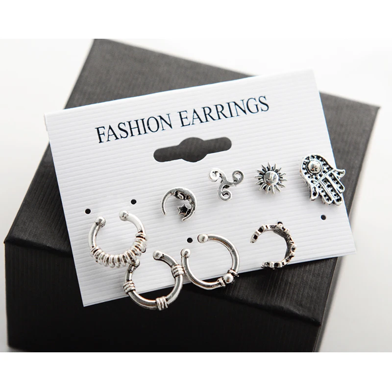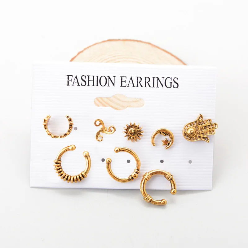 Богемные серьги в стиле ретро Sun And Moon Huggies, клипсы, восемь штук, серьги-гвоздики, женские модные очаровательные серьги