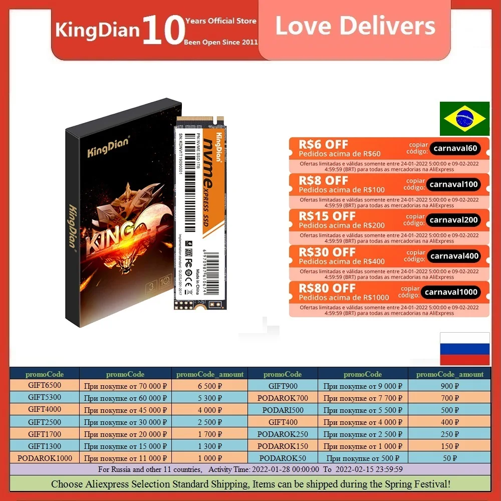 Внутренний SSD-накопитель KingDian M.2 NVMe PCIe 3,0x4, 256 ГБ, 512 ГБ, M2, для ноутбуков и настольных ПК