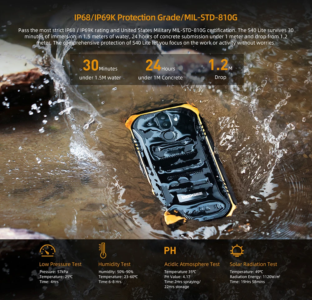 Смартфон DOOGEE S40 Lite защищенный, IP68, 2 + 16 ГБ, Android 9,0, 5,5 дюйма, 4650 мА ч, 8 МП