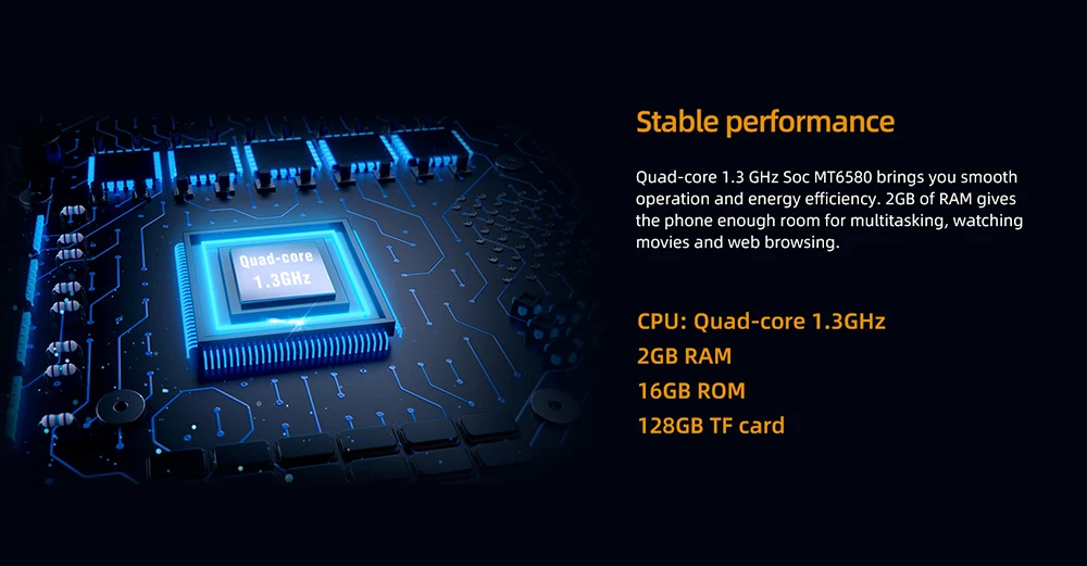 ProcessorMTK6580 4xCortex-A53 up to 1.3Hz