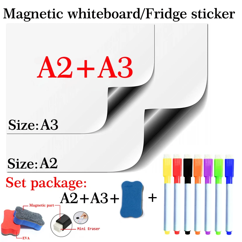 Магнитная доска A2 + A3, 2 шт., гибкая накладка, магнитный Набор для холодильника, посылка Кая, школьная, офисная, кухонная, белая доска