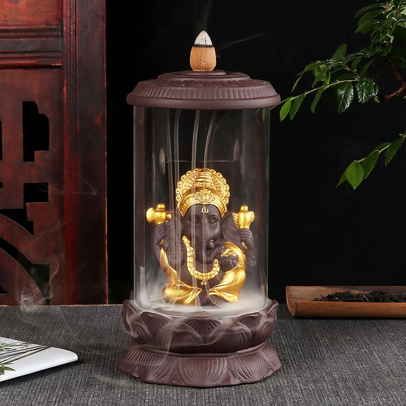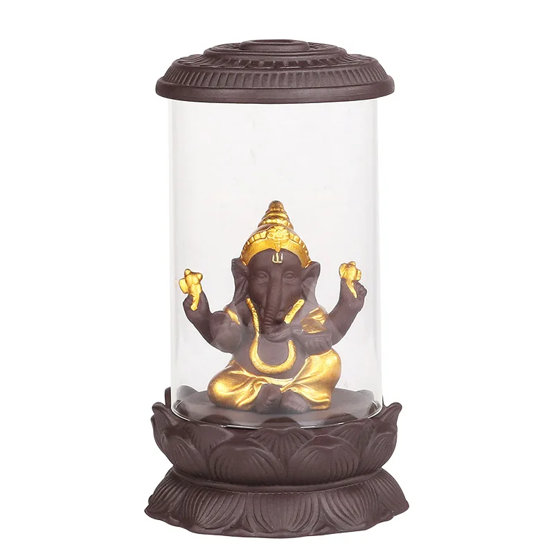 Курильница с обратным потоком, фиолетовый песок, креативная статуя Будды, Золотой Ганеша, буддистское украшение, украшение дзен, буддизм