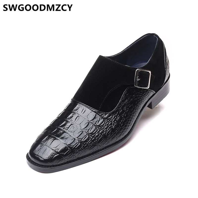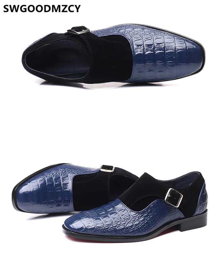 Туфли-оксфорды мужские, с ремешком из крокодиловой кожи